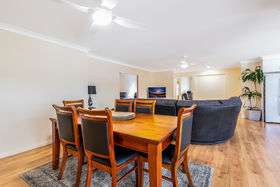 The sheer size of the open plan area of the family room, dining area and kitchen will definitely impress you all service by a large reverse cycle air conditioner.