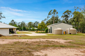 Then there is the very impressive shed 9mx14.2mx5m. Door heights are front door 3.6m, two side doors are 3meters. Along with 10amp and 15amp power outlets. This is the shed every bloke wants and also could be used to run a business out of but would have to be subject to council approval. There are three 22500 litre water tanks which two are connected to the house but with a flick of a switch the house can revert back to town water.
